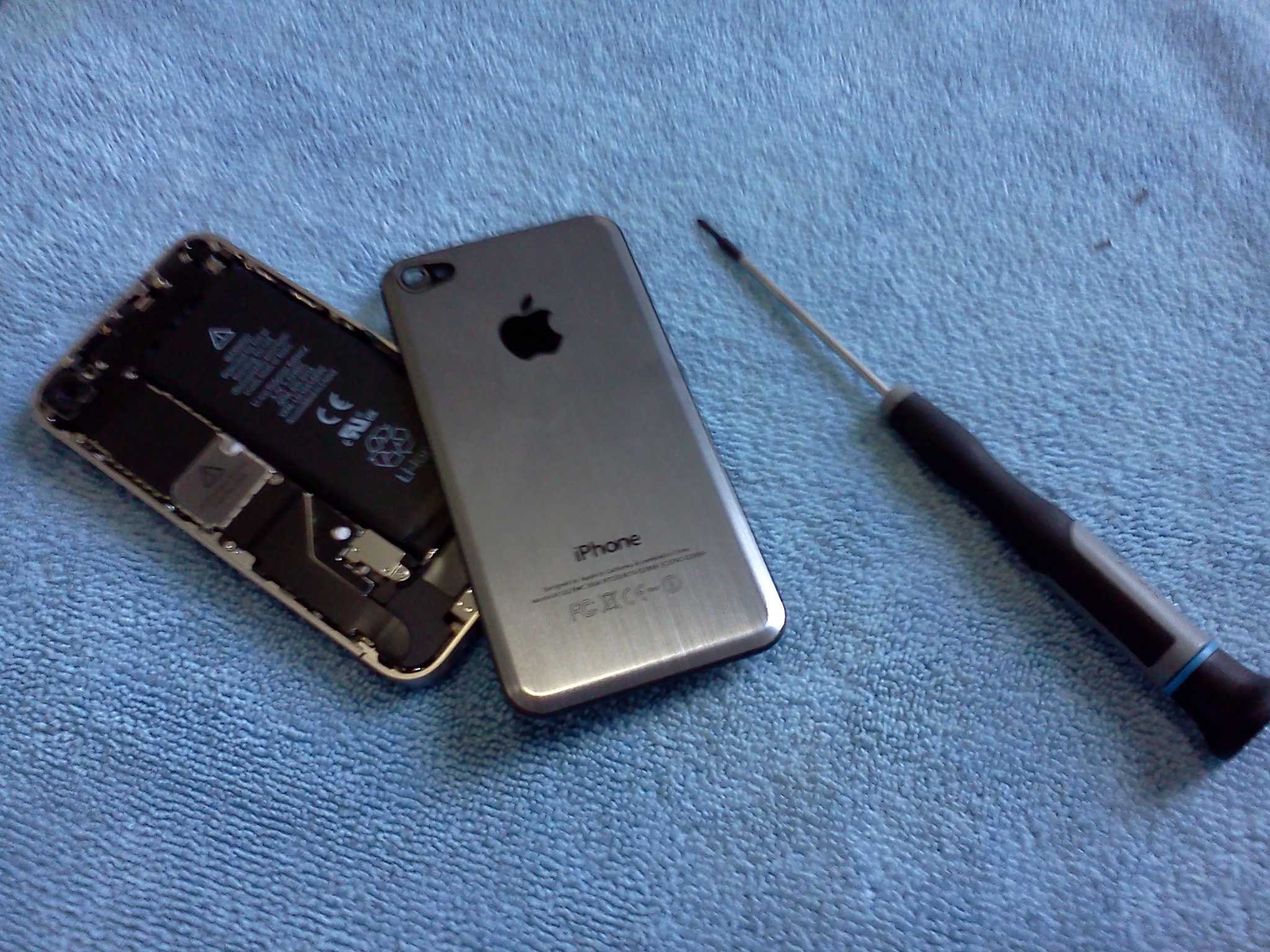 I recently bought a stainless steel replacement back for my iPhone 4, and just got around to installing it today. There’s nothing wrong with my original glass back, I just like the look of the stainless steel. It was really simple actually, I bought a “000” Philip’s head screwdriver from my local hardware store and followed the instructions on iFixIt. My only complaint is that the anchors on the new back panel are plastic, unlike anchors on the glass back panel from Apple, which are metal. I think I may have overtightened one of the screws and stripped it a little (the plastic anchor, not the screw), but it seems fine.